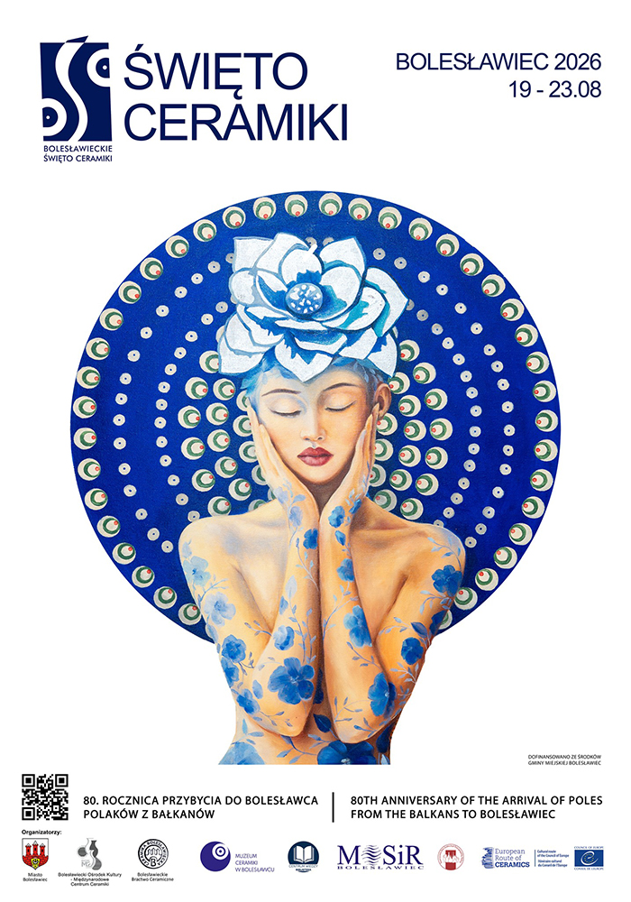 Oficjalny plakat tegorocznego Święta Ceramiki! Przygotowania do tegorocznego Święta Ceramiki nabierają coraz szybszego tempa. Już niedługo uchylimy przed Państwem rąbek tajemnicy związany z artystami, którzy pojawią się na scenie. Najpierw jednak – wzorem lat ubiegłych – publikujemy oficjalny plakat naszego wydarzenia! Po ubiegłym roku i dość odważnym nawiązaniu do znamienitej rocznicy współpracy z Nogent-sur-Marne, postanowiliśmy w tym roku powrócić do motywów, które kojarzą się bezpośrednio z naszym miastem. Pomysłów było wiele, jednak pięknym zrządzeniem losu w galerii Bolesławieckiego Ośrodka Kultury – Międzynarodowego Centrum Ceramiki zagościła wystawa obrazów „Alicja w Krainie Czarów inaczej” pani Beaty Montowskiej. To właśnie wśród nich pojawiła się niezwykła kobieta otoczona ceramicznym wzorem. Od tego momentu wiedzieliśmy, że to właśnie ona powinna znaleźć się na piedestale tegorocznego święta. Przedstawiamy Państwu tegoroczną grafikę i zostawiamy z pytaniem… jak się Państwu podoba?